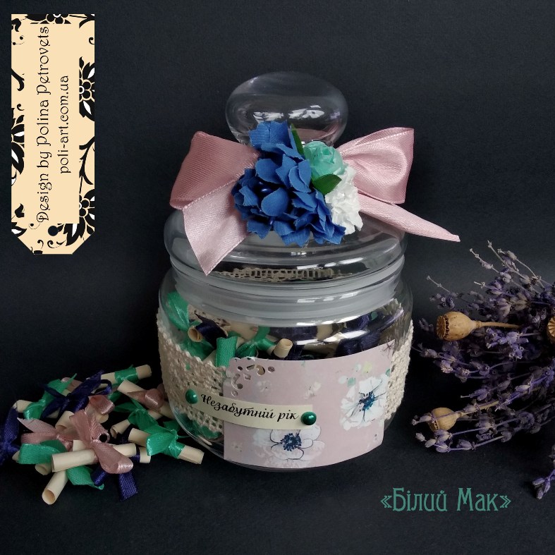 Introduction » За видами подарунків / виробів » Баночки романтичні » Банка "Незабутній рік" в дизайні "Білий Мак"