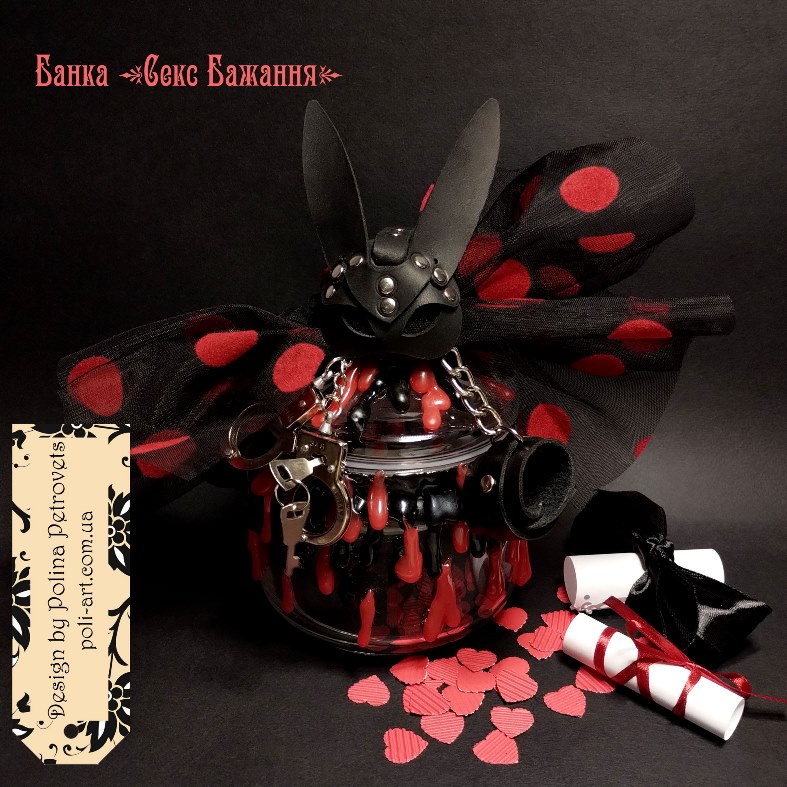 Introduction » За видами подарунків / виробів » Баночки романтичні » Банка "СЕКС бажання" в дизайні "Шкіряне Кроленя"