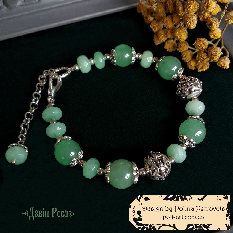 Introduction » За видами подарунків / виробів » Авторські прикраси » Браслет з 2-х видів нефритів "Дзвін Роси"