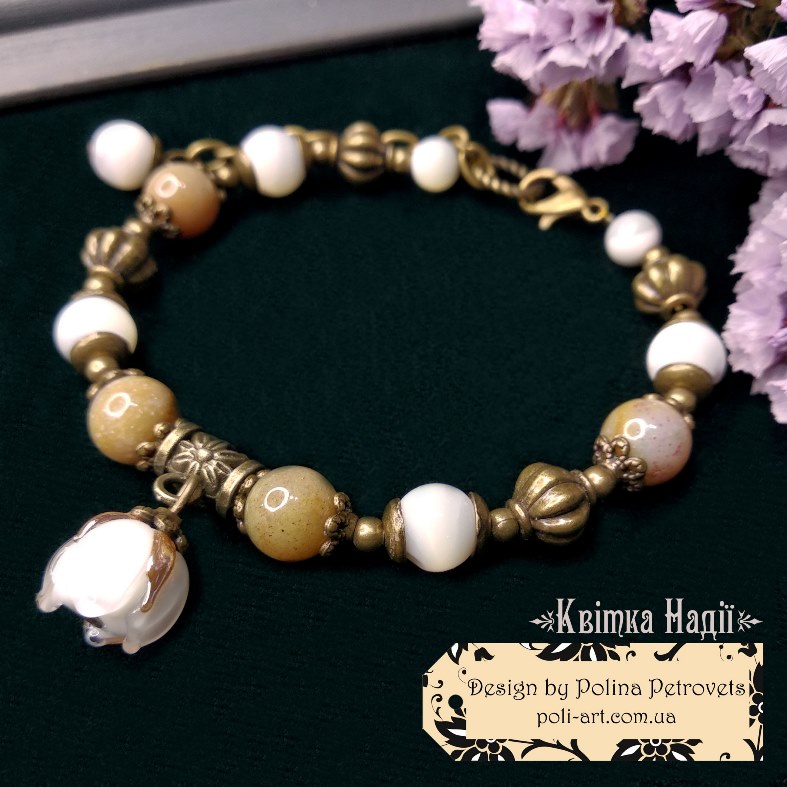 Introduction » За видами подарунків / виробів » Авторські прикраси » Браслет з агатами, баламутами та лемпворком "Квітка Надії"