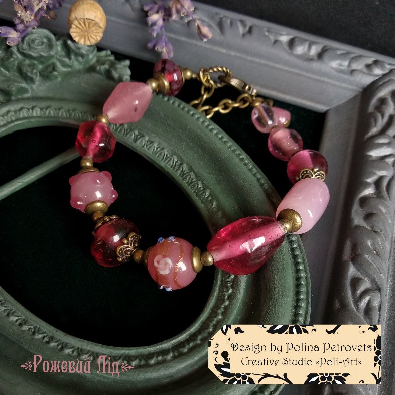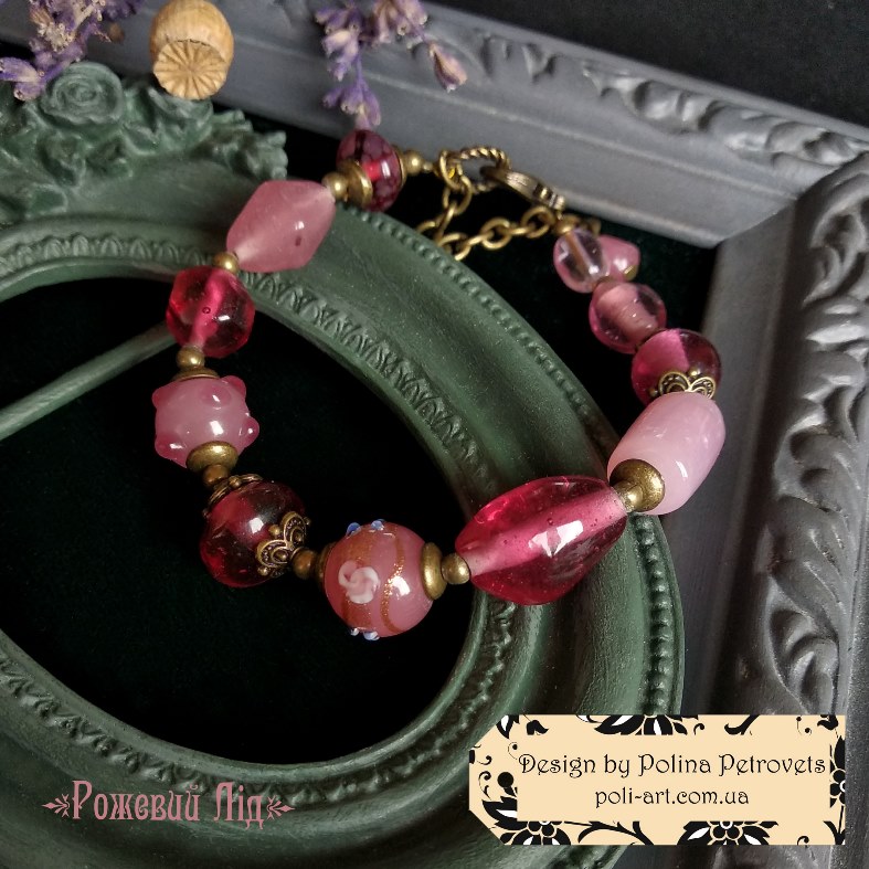 Introduction » За видами подарунків / виробів » Авторські прикраси » Браслет з лемпворком "Рожевий Лід"