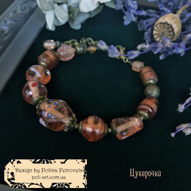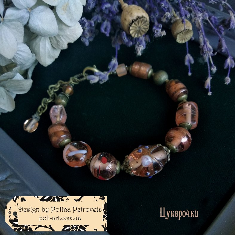 Introduction » За видами подарунків / виробів » Авторські прикраси » Браслет з лемпворку "Цукерочки"