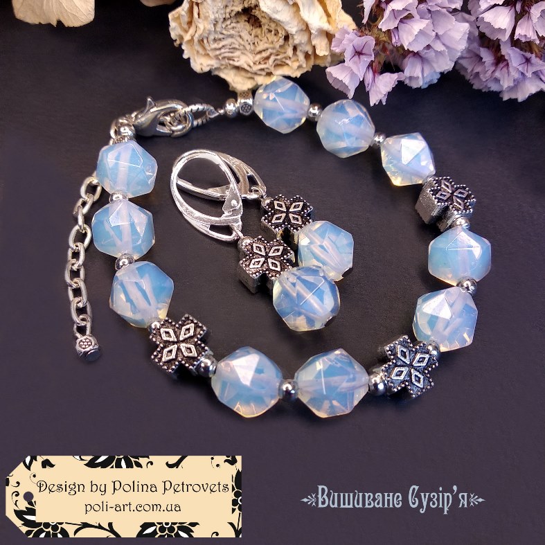 Introduction » За видами подарунків / виробів » Авторські прикраси » Браслет з місячним камінням (місячний кристал) "Вишиване Сузір'я"