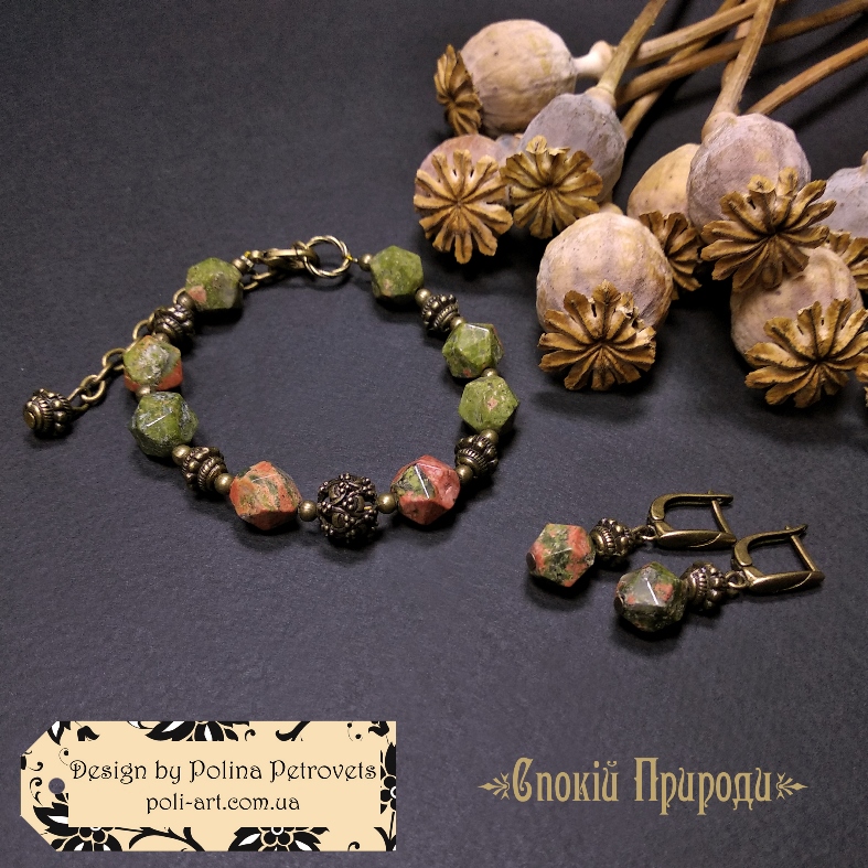 Introduction » За видами подарунків / виробів » Авторські прикраси » Браслет з унакітом "Спокій Природи"