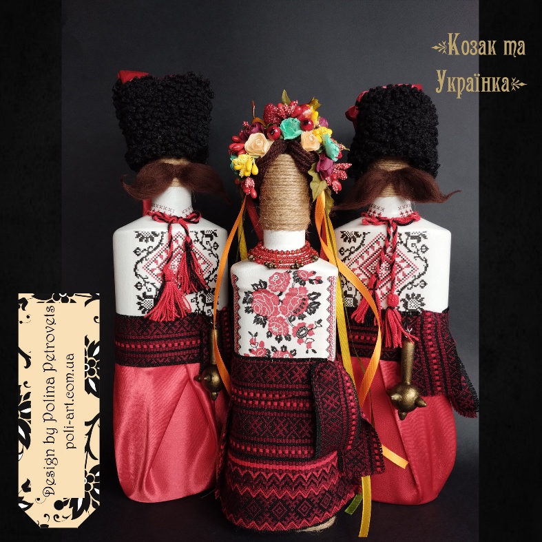 Інформація щодо декору пляшки "Козак" за посиланням: https://www.poli-art.com.ua/podarynkova-plyashka-robota-z-dekoryvannya-kozak