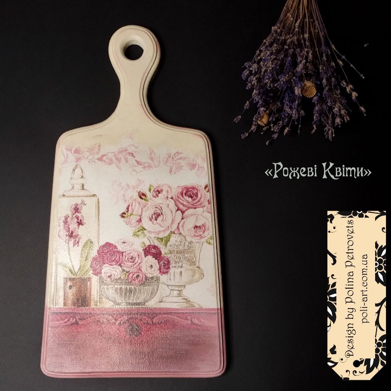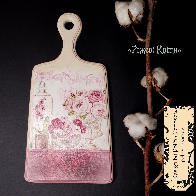 Introduction » За видами подарунків / виробів » Кухона тема » Дошка для кухні (з робочою поверхнею) "Рожеві Квіти"