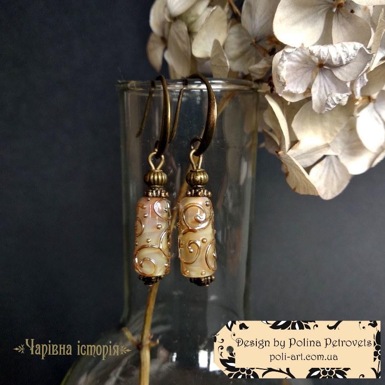 Матеріали: намистини натурального каміння Агату, намистини Лемпворку (муранське скло ручної роботи), а також металеві намистини та фурнітура бронзового кольору - біжутерний сплав.