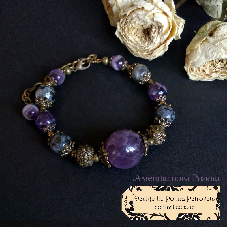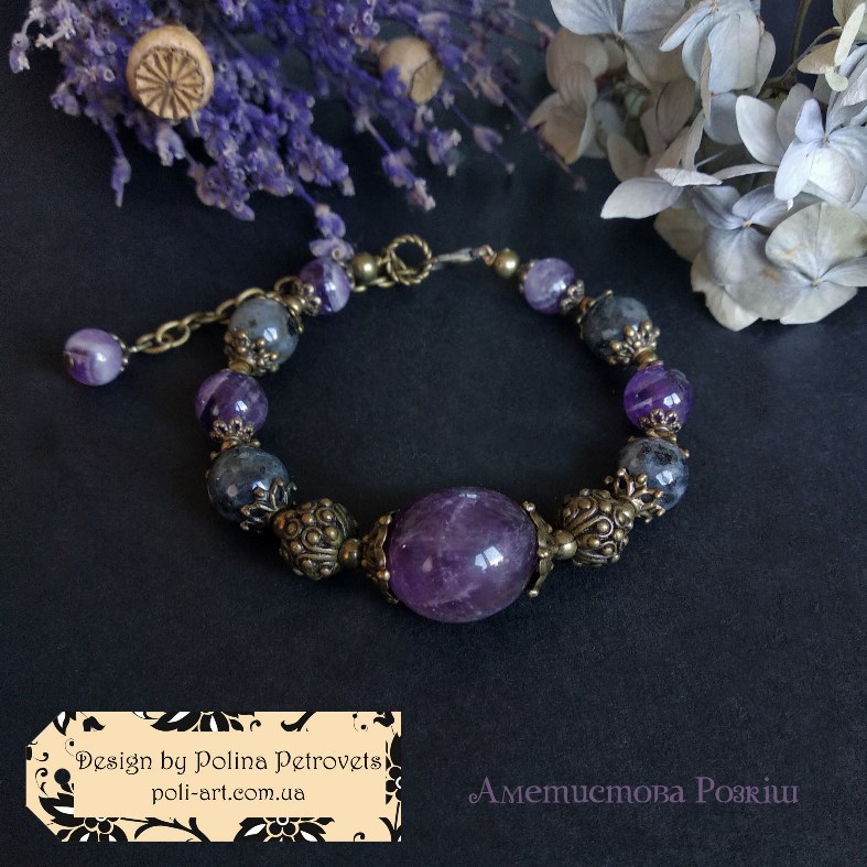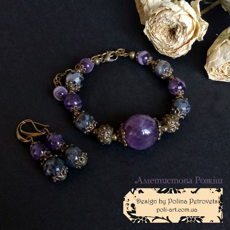 Introduction » За видами подарунків / виробів » Авторські прикраси » Комплект браслет і сережки з аметисту та лабрадору "Аметистова Розкіш"