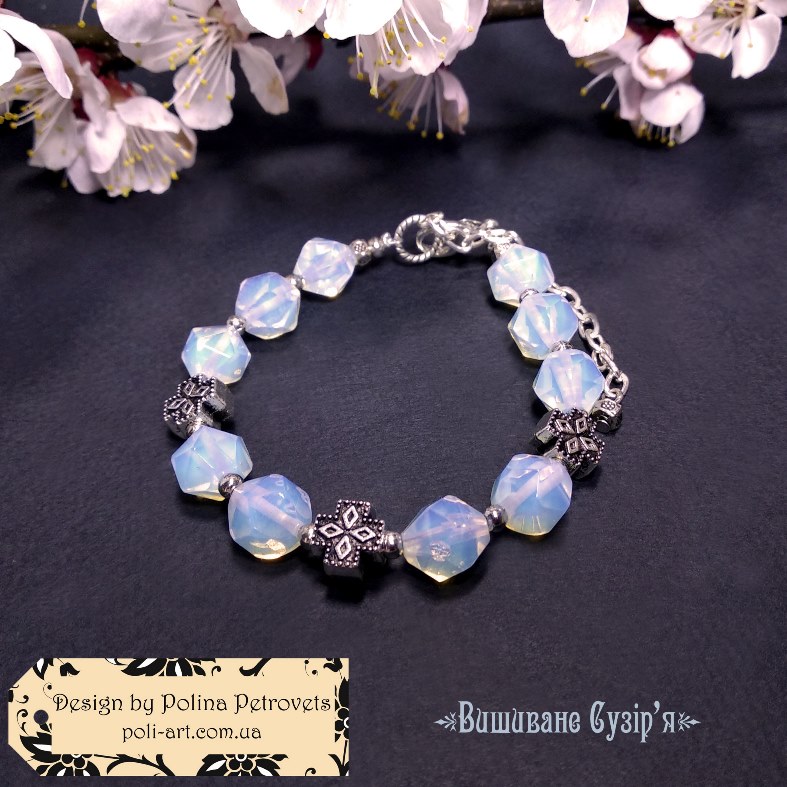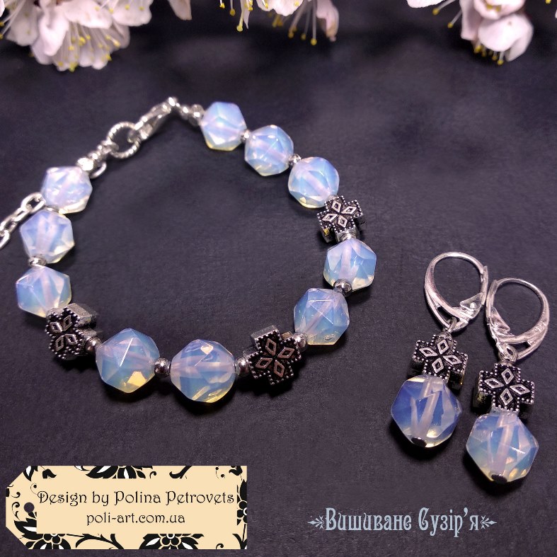 Introduction » За видами подарунків / виробів » Авторські прикраси » Комплект браслет і сережки з місячним камінням (місячний кристал) "Вишиване Сузір'я"
