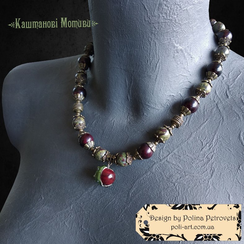 Чудове однорядне намисто з неймовірним Підвісом з лемпворком "Каштан".