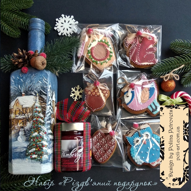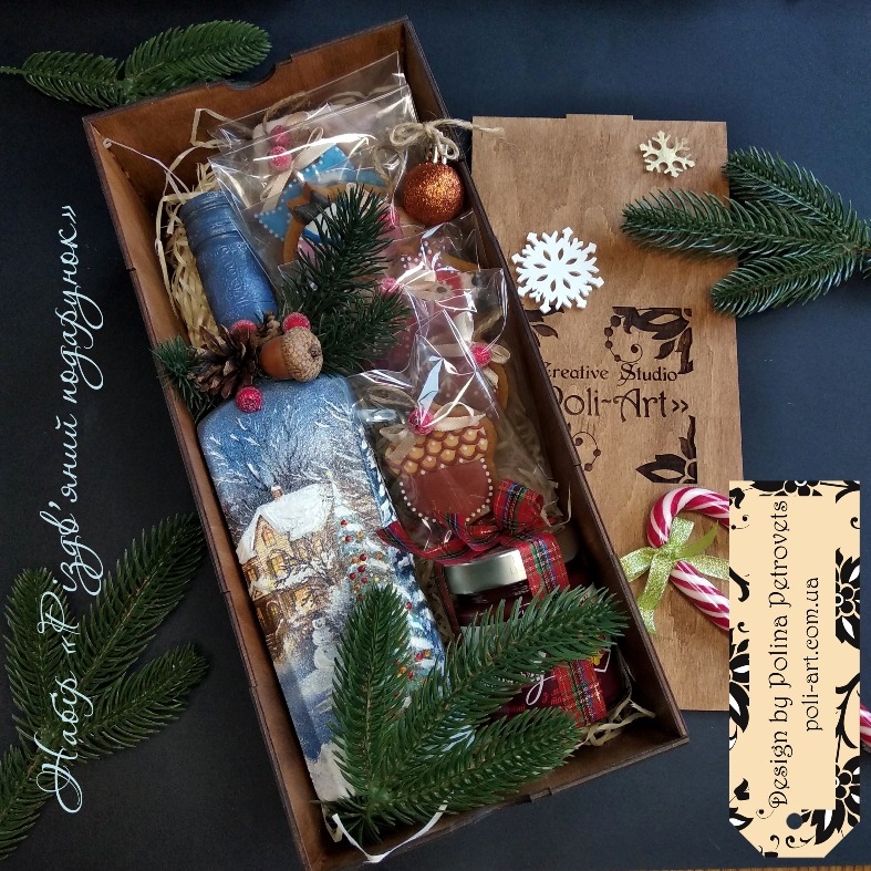 Introduction » За видами подарунків / виробів » Декор алкоголю » Подарунковий набір з декорованим алкоголем "Різдв'яний подарунок"