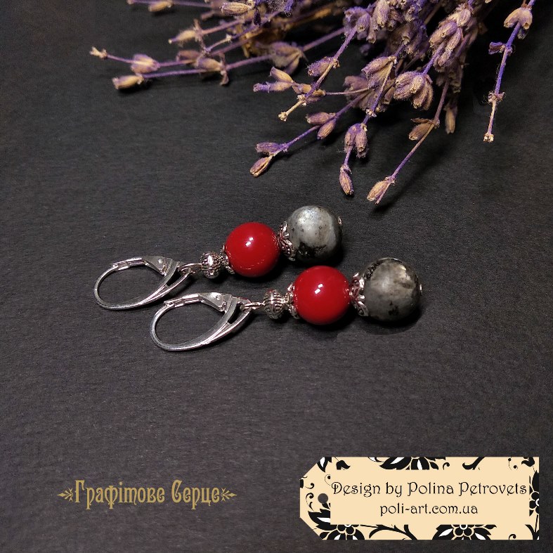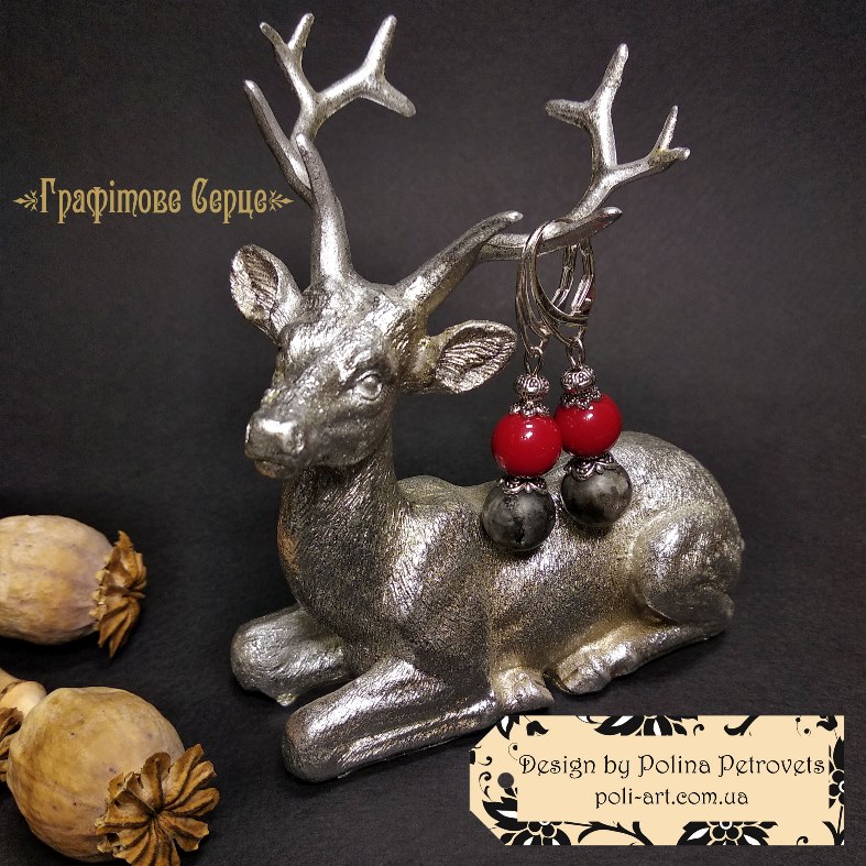 Introduction » За видами подарунків / виробів » Авторські прикраси » Сережки з лабрадоритом і лемпворком "Графітове Серце"