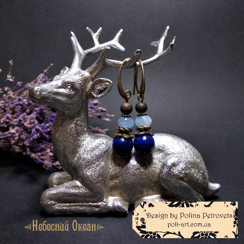 Introduction » За видами подарунків / виробів » Авторські прикраси » Сережки з лазуритом і аквамарином "Небесний Океан"