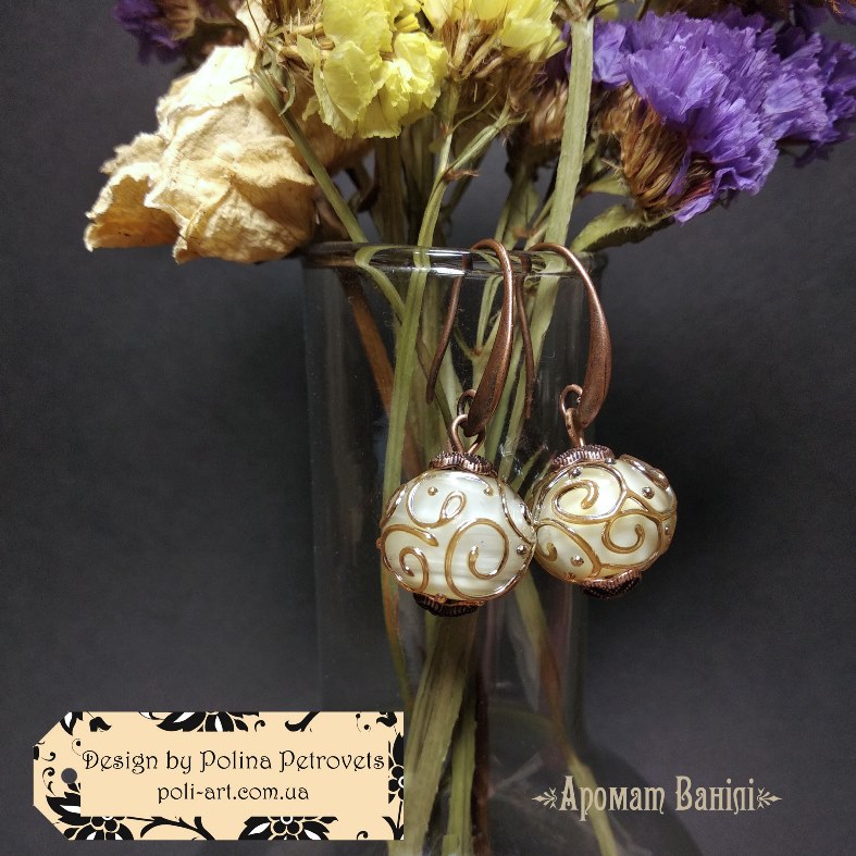 Introduction » За видами подарунків / виробів » Авторські прикраси » Сережки з лемпворком "Аромат Ванілі"