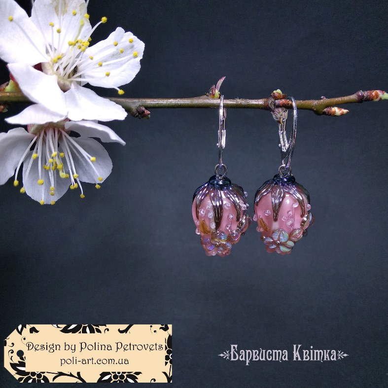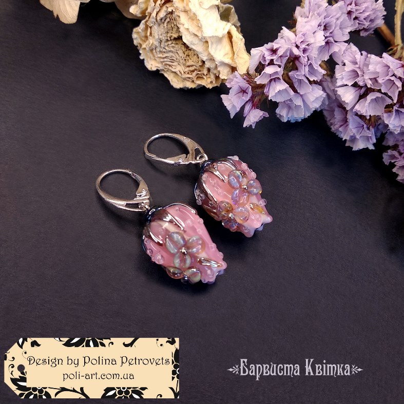 Introduction » За видами подарунків / виробів » Авторські прикраси » Сережки з лемпворком "Барвиста Квітка"