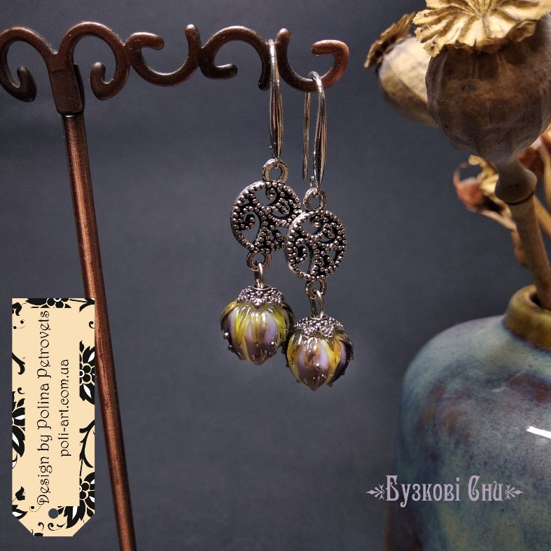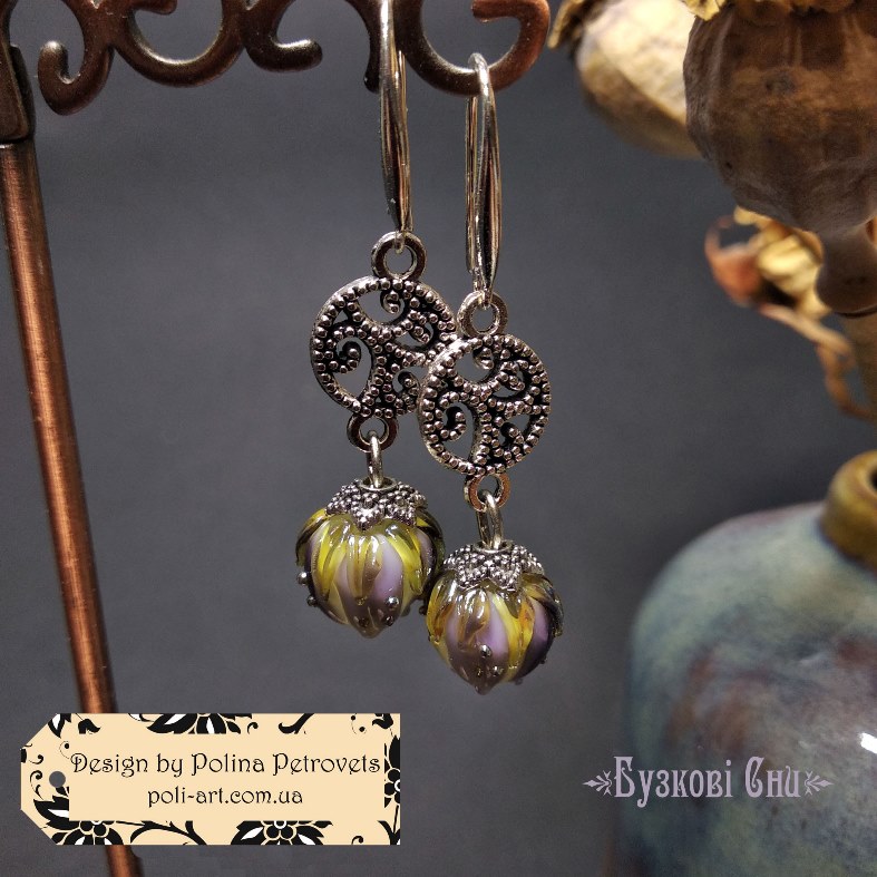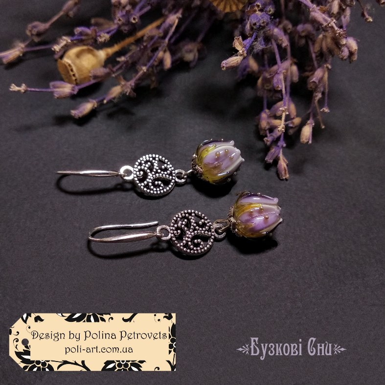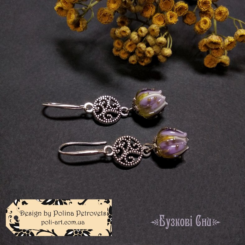Introduction » За видами подарунків / виробів » Авторські прикраси » Сережки з лемпворком "Бузкові Сни"