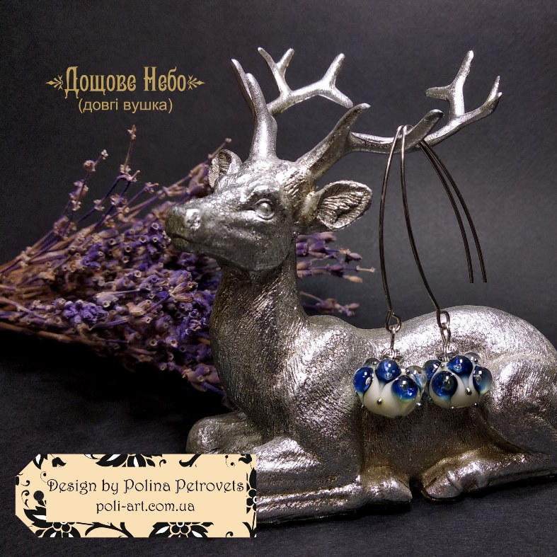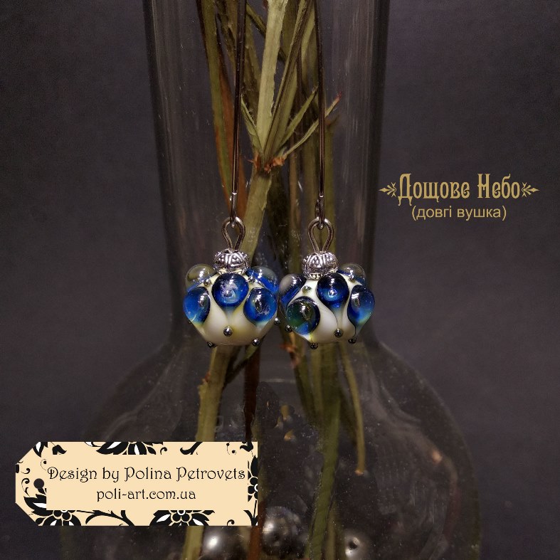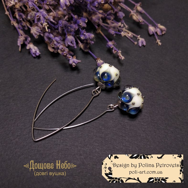 Сережки з лемпворком "Дощове Небо" (довгі вушка)