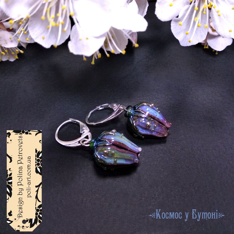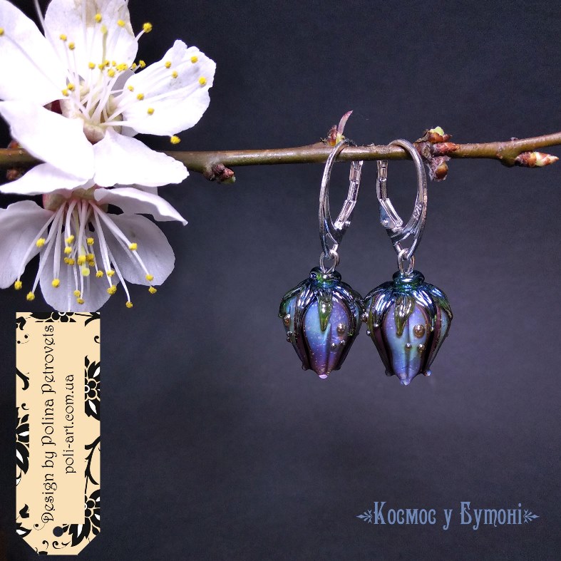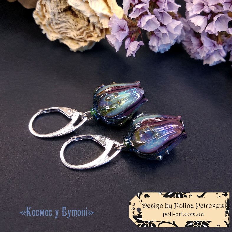 Introduction » За видами подарунків / виробів » Авторські прикраси » Сережки з лемпворком "Космос в Бутоні"