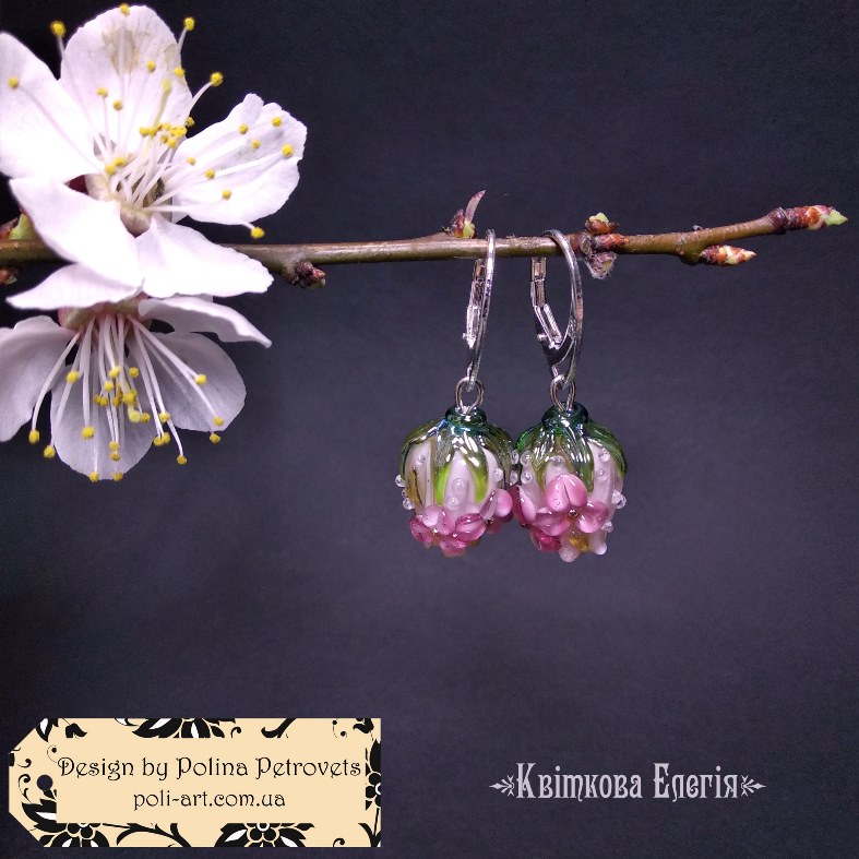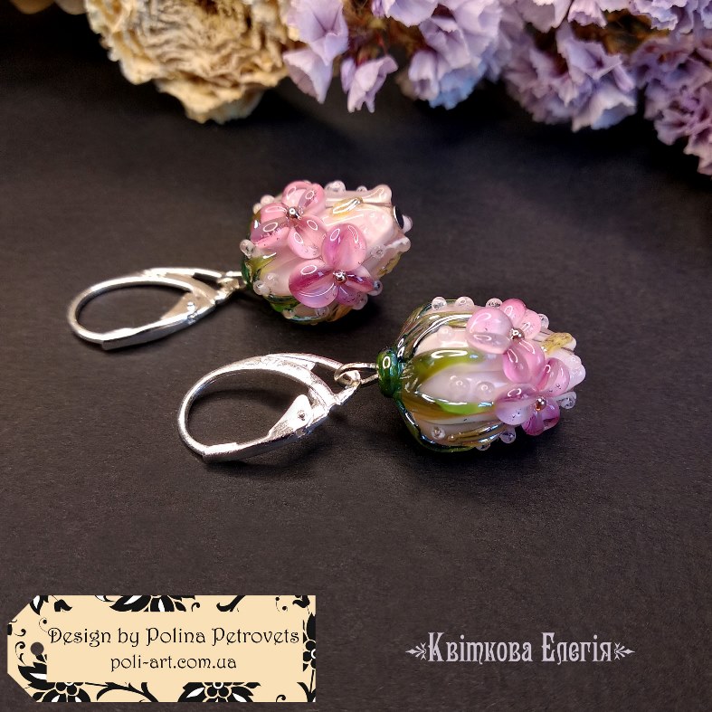 Introduction » За видами подарунків / виробів » Авторські прикраси » Сережки з лемпворком "Квіткова Елегія"