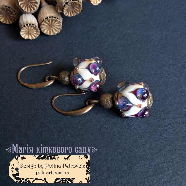 Introduction » За видами подарунків / виробів » Авторські прикраси » Сережки з лемпворком "Магія Квіткового Саду"
