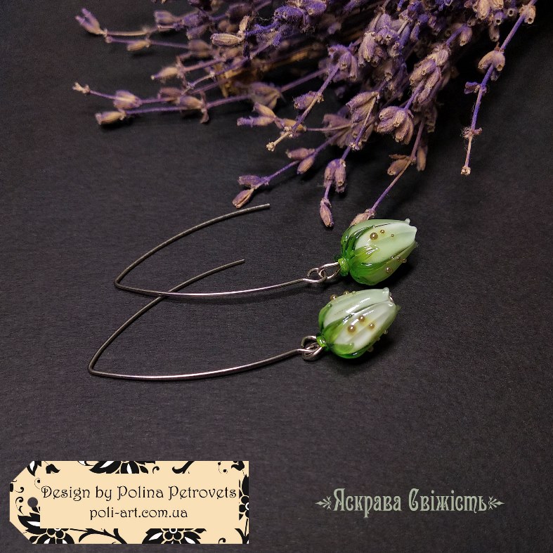Introduction » За видами подарунків / виробів » Авторські прикраси » Сережки з лемпворком (муранське скло ручної роботи) "Яскрава Свіжість" (new)