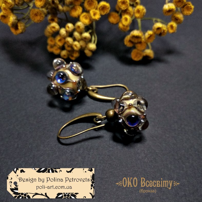 Introduction » За видами подарунків / виробів » Авторські прикраси » Сережки з лемпворком "ОКО Всесвіту" (бронза)