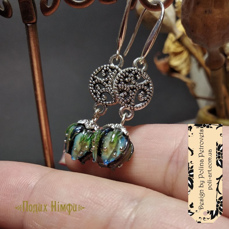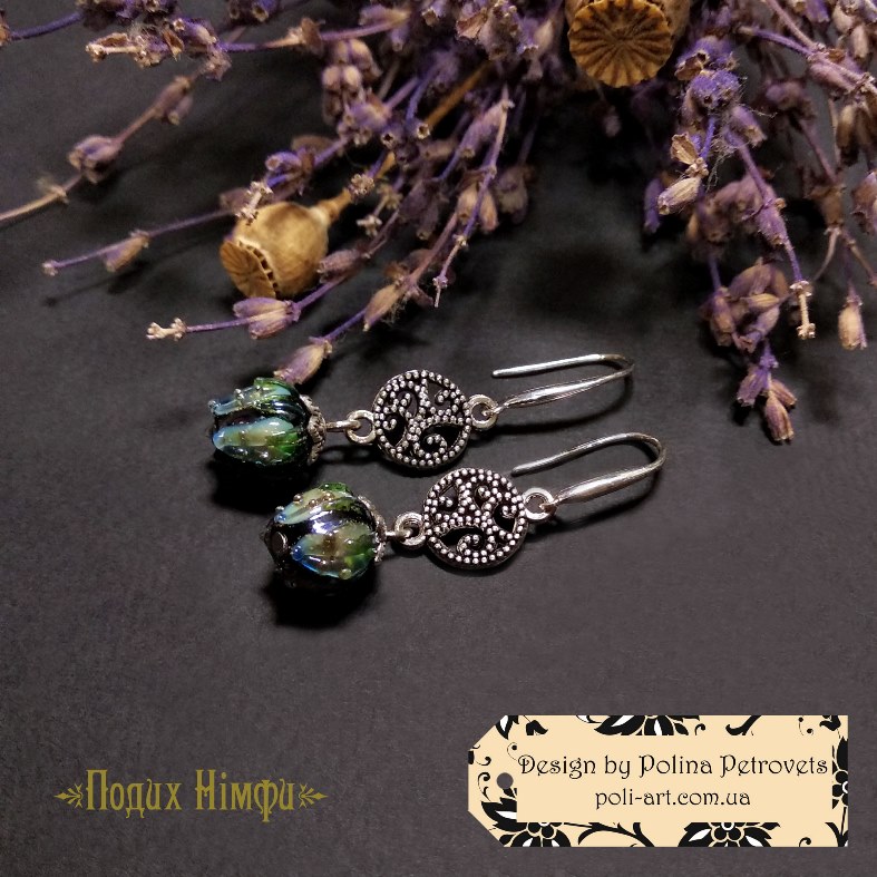Introduction » За видами подарунків / виробів » Авторські прикраси » Сережки з лемпворком "Подих Німфи"