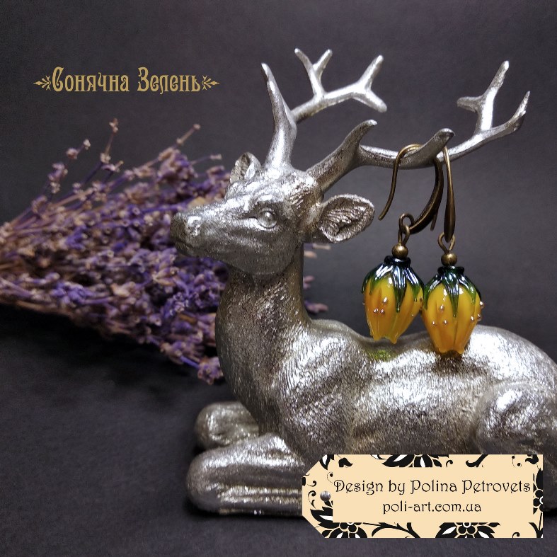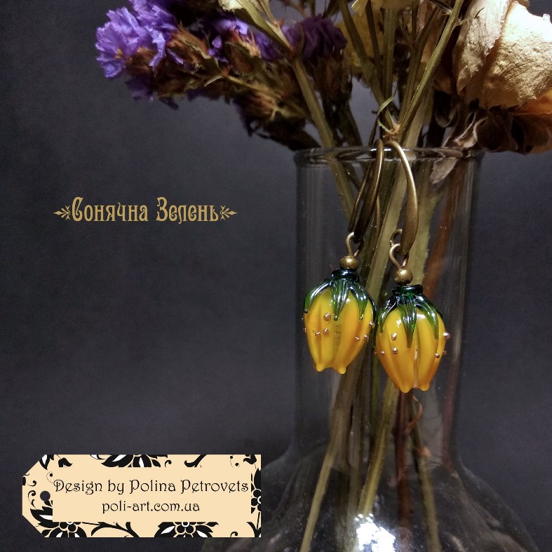 Introduction » За видами подарунків / виробів » Авторські прикраси » Сережки з лемпворком "Сонячна Зелень"