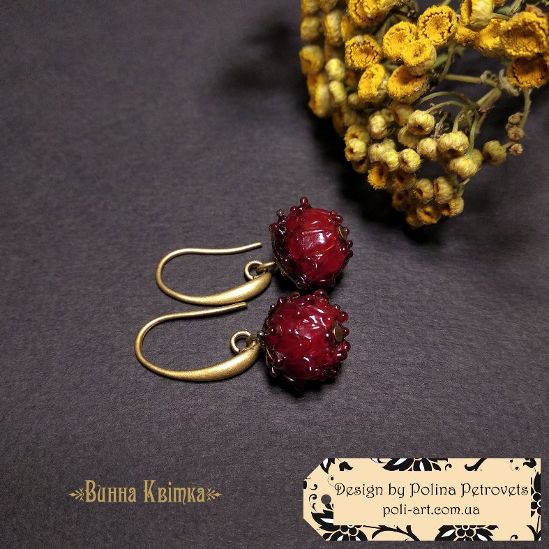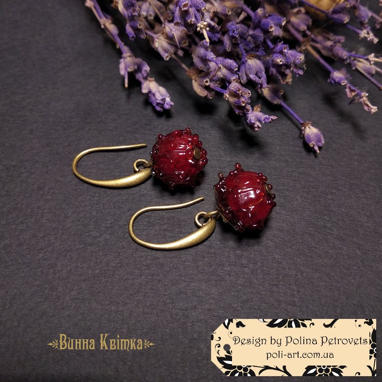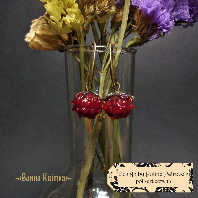 Introduction » За видами подарунків / виробів » Авторські прикраси » Сережки з лемпворком "Винна Квітка"