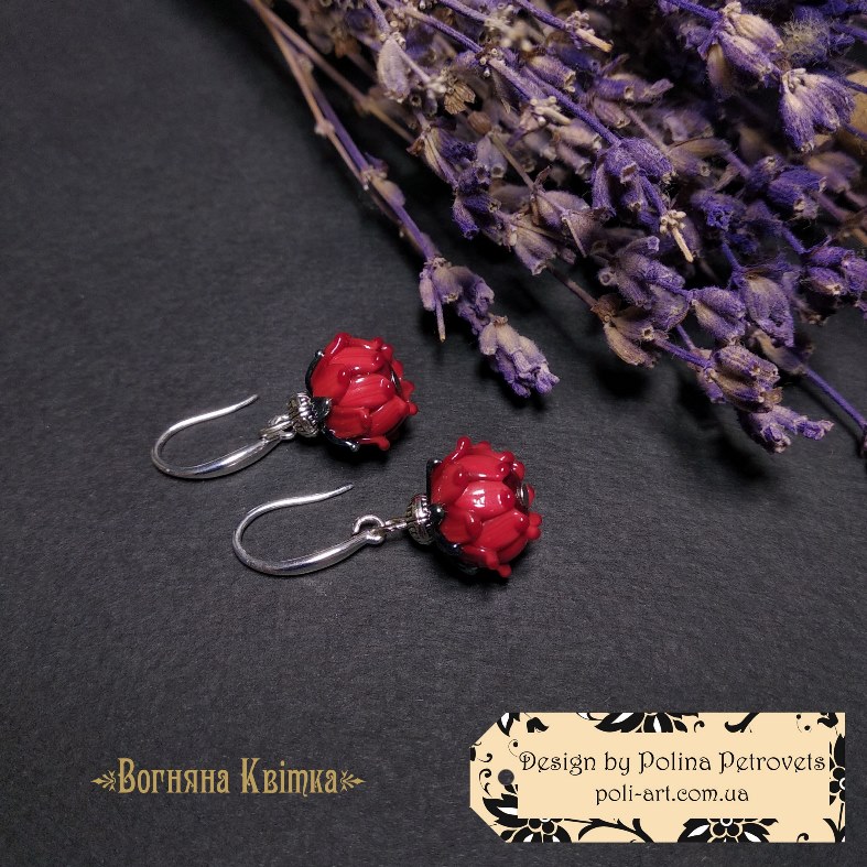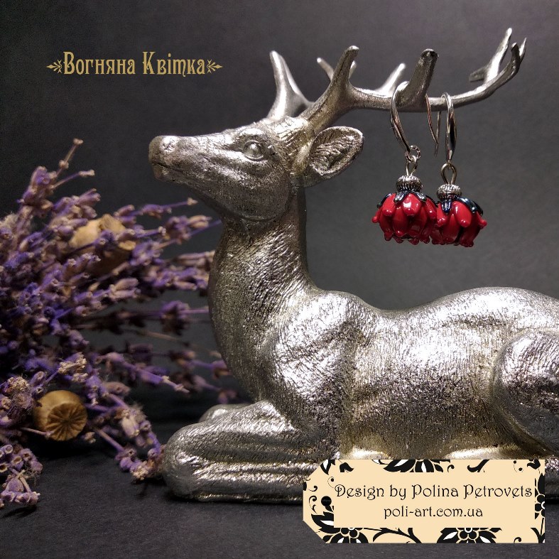 Introduction » За видами подарунків / виробів » Авторські прикраси » Сережки з лемпворком "Вогняна Квітка"