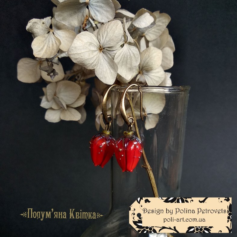 Introduction » За видами подарунків / виробів » Авторські прикраси » Сережки з лемпворку (муранське скло ручної роботи) "Полум'яна Квітка"