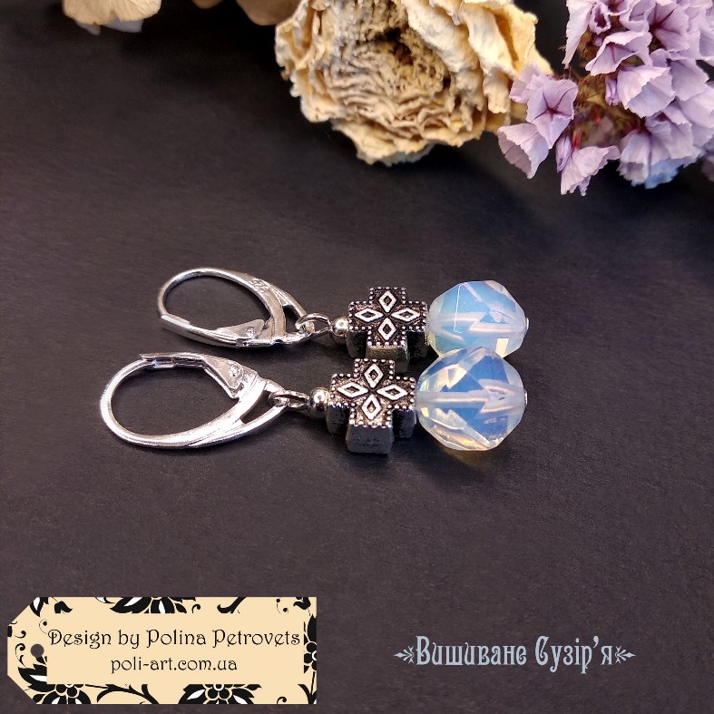 Introduction » За видами подарунків / виробів » Авторські прикраси » Сережки з місячним камінням (місячний кристал) "Вишиване Сузір'я"