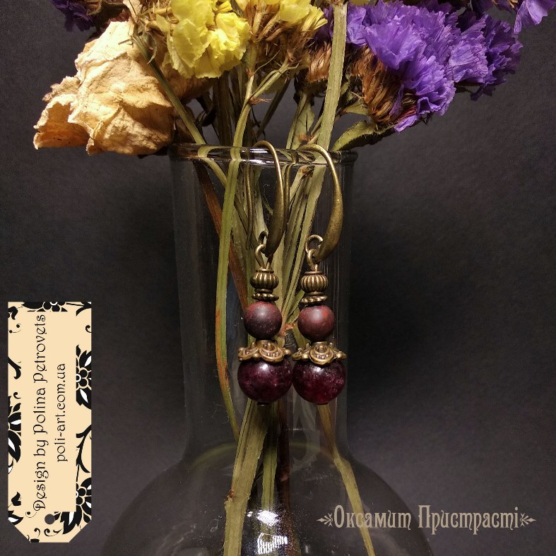 Introduction » За видами подарунків / виробів » Авторські прикраси » Сережки з яшмою і гранатом "Оксамит Пристрасті"