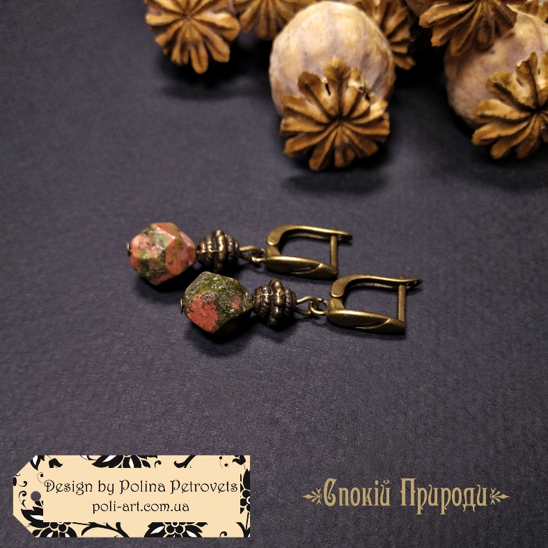 Introduction » За видами подарунків / виробів » Авторські прикраси » Сережки з унакітом "Спокій Природи"